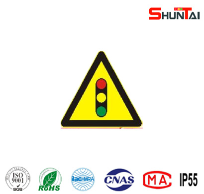 注意信號燈警告標志牌
